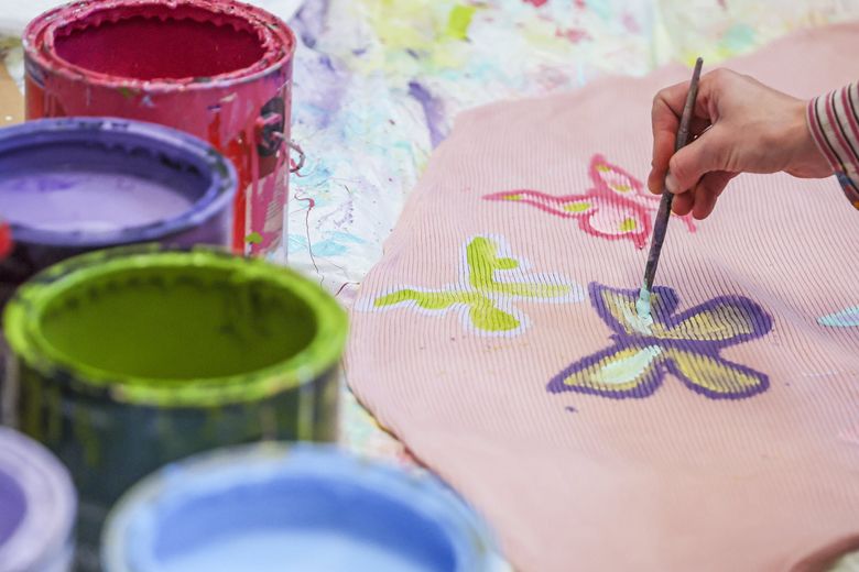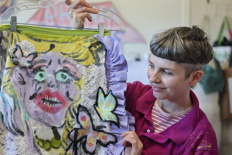 उनमें से कम से कम एक टन एबट के उत्तरी सिएटल स्टूडियो में होना चाहिए, जो फर्श से छत तक पुनः प्राप्त वस्त्रों से भरा हुआ है जो नई फैशन कृतियों में बदलने के लिए तैयार हैं।